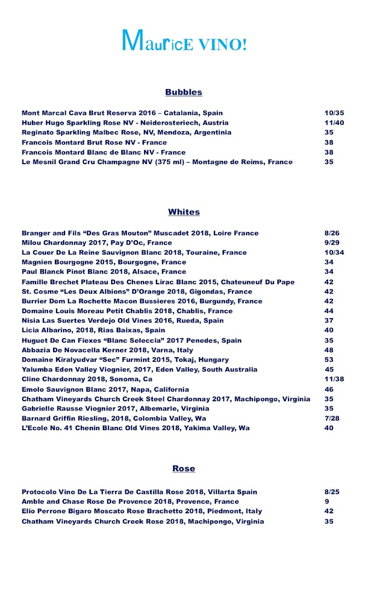 Overall, Maurice’s menu invites diners to savor moments of quiet enjoyment, whether sharing conversation over small plates or indulging in thoughtfully prepared entrees. The balance between comforting flavors and elegant presentation makes each visit feel both simple and special.
