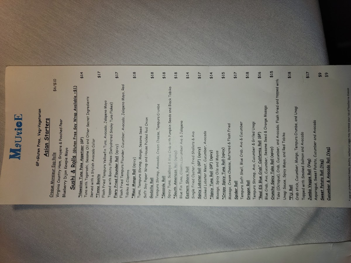 The menu features both classic seasonal flavors and creative twists, including a variety of fresh seafood options inspired by the local Eastern Shore, alongside elevated takes on familiar favorites like the Maurice Burger and Lamb Chops. For those who enjoy lighter fare, salads and delicate sushi rolls provide fresh, vibrant choices that match the setting’s laid-back yet polished vibe.
